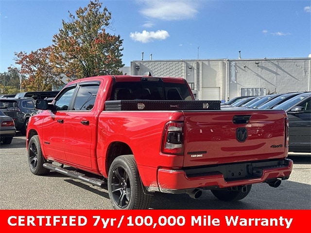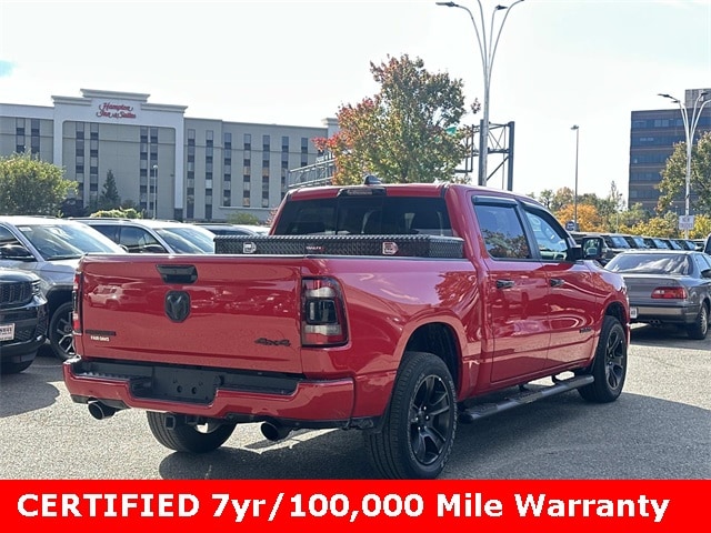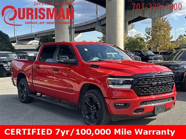 FCA US LLC Certified Pre-Owned Certified, FCA US LLC Certified Pre-Owned Certified, 115V Auxiliary Power Outlet, 2nd Row In Floor Storage Bins, 3 Rear Seat Head Restraints, 3.21 Rear Axle Ratio, 4 Way Front Headrests, 4-Wheel Disc Brakes, 400W Inverter, 48V Belt Starter Generator, 4G LTE Wi-Fi Hot Spot, 6 Speakers, 9 Amplified Speakers w/Subwoofer, ABS brakes, Accent Color Door Handles, Accent Color Premium Power Mirrors, Air Conditioning, Air Conditioning ATC w/Dual Zone Control, All R1 High Radios, All Radio Equipped Vehicles, Alloy wheels, AM/FM radio, Anti-Spin Differential Rear Axle, Apple CarPlay, Auto-Dimming Exterior Driver Mirror, Auto-Dimming Rear-View Mirror, Big Horn Badge, Big Horn Level B Equipment Group, Black Exterior Truck Badging, Black Headlamp Bezels, Black Interior Accents, Black Painted Exterior Mirrors Caps, Black Premium Power Mirrors, Blind Spot & Cross Path Detection, Body Color Front Bumper, Body Color Rear Bumper w/Step Pads, Brake assist, Bucket Seats, Bumpers: chrome, Class IV Receiver Hitch, Cloth Bench Seat, Cluster 7.0" TFT Color Display, Compass, Connected Travel & Traffic Services, Connectivity - US/Canada, Convex Wide-Angle Exterior Mirror Insert, Cruise control, Delay-off headlights, Deluxe Cloth Bucket Seats, Digital Rearview Mirror, Driver door bin, Dual Exhaust w/Black Tips, Dual front impact airbags, Dual front side impact airbags, Electronic Stability Control, Emergency communication system: RAM Connect, Exterior Mirrors Courtesy Lamps, Exterior Mirrors w/Heating Element, Exterior Mirrors w/Supplemental Signals, For Details, Visit DriveUconnect.com, For More Info, Call 800-643-2112, Front anti-roll bar, Front Center Armrest w/Storage, Front Fog Lamps, Front License Plate Bracket, Front reading lights, Front Seat Back Map Pockets, Front wheel independent suspension, Full Length Floor Console, Fully automatic headlights, Global Telematics Box Module (TBM), Glove Box Lamp, Google Android Auto, GPS Navigation, Grille Surround 1 Black Texture 2 Black, HD Radio, Heads-Up Display, Heated door mirrors, Heated Front Seats, Heated Steering Wheel, Illuminated entry, Integrated Voice Command w/Bluetooth, Leather steering wheel, LED CHMSL Lamp, LED Footwell Lighting, LED Taillamps, Low tire pressure warning, Manual Adjust 4-Way Front Passenger Seat, Media Hub w/2 Charge Only USBs, Night Edition, Occupant sensing airbag, Outside temperature display, Overhead airbag, Overhead console, Panic alarm, ParkSense Front/Rear Park Assist w/Stop, ParkView Rear Back-Up Camera, Passenger door bin, Passenger vanity mirror, Power 2-Way Driver Lumbar Adjust, Power 8-Way Driver Seat, Power Adjustable Pedals, Power door mirrors, Power steering, Power windows, Power-Folding Mirrors, Quick Order Package 27Z Big Horn, Radio data system, Radio: Uconnect 3 w/5" Display, Radio: Uconnect 5 Nav w/12.0" Display, RAM Grille Badge - Black, RAM Grille Badge - Chrome, Rear 60/40 Folding Seat, Rear anti-roll bar, Rear Center Armrest, Rear Dome w/On/Off Switch Lamp, Rear Power Sliding Window, Rear seat center armrest, Rear step bumper, Rear Window Defroster, Remote keyless entry, Remote Start System, Security Alarm, SiriusXM Radio Service, SiriusXM Satellite Radio, SiriusXM w/360L, Split folding rear seat, Steering wheel mounted audio controls, Sun Visors w/Illuminated Vanity Mirrors, Tachometer, Technology Group, Telescoping steering wheel, Tilt steering wheel, Traction control, Trip computer, Universal Garage Door Opener, USB Host Flip, Variably intermittent wipers, Voltmeter, Wheels: 18" x 8" Cast-Aluminum Painted, Wheels: 20" x 9.0" Premium Paint/Polished.