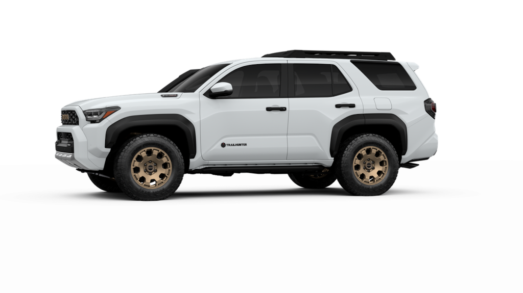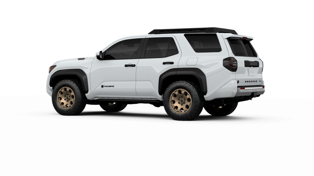 - Black "toyota" heritage grille, door handles, and overfenders; color-keyed mirror caps and rear spoiler; black "trailhunter" and "4runner" badges.
